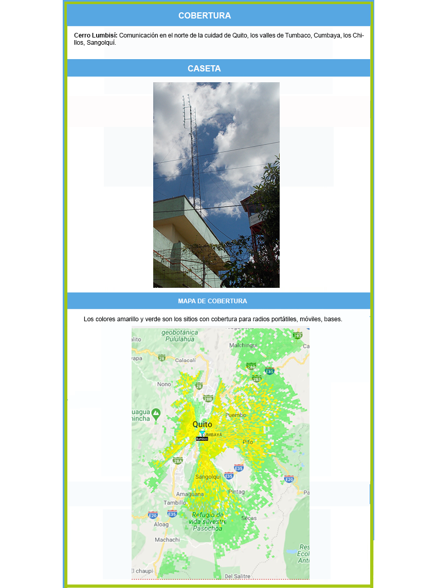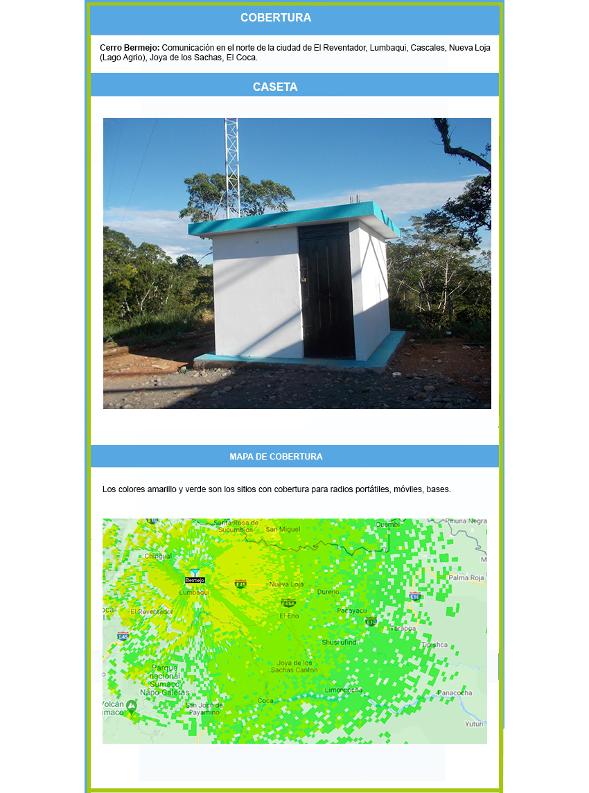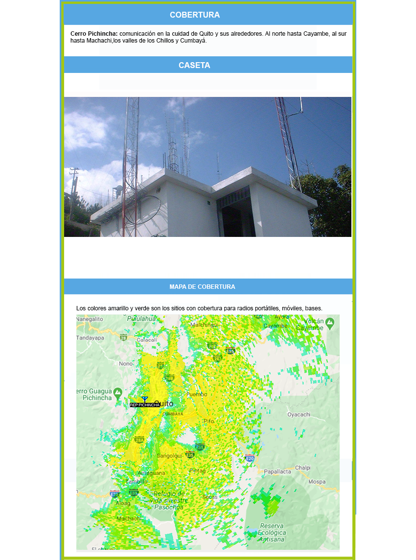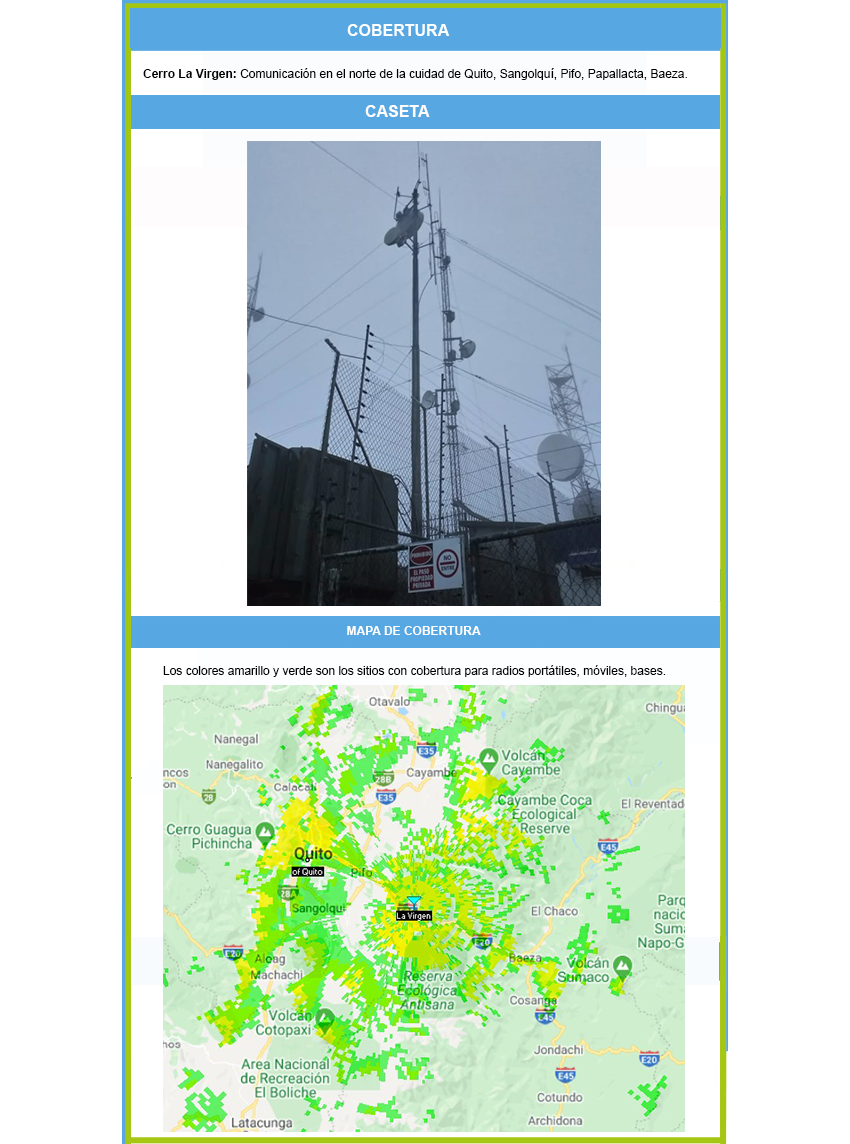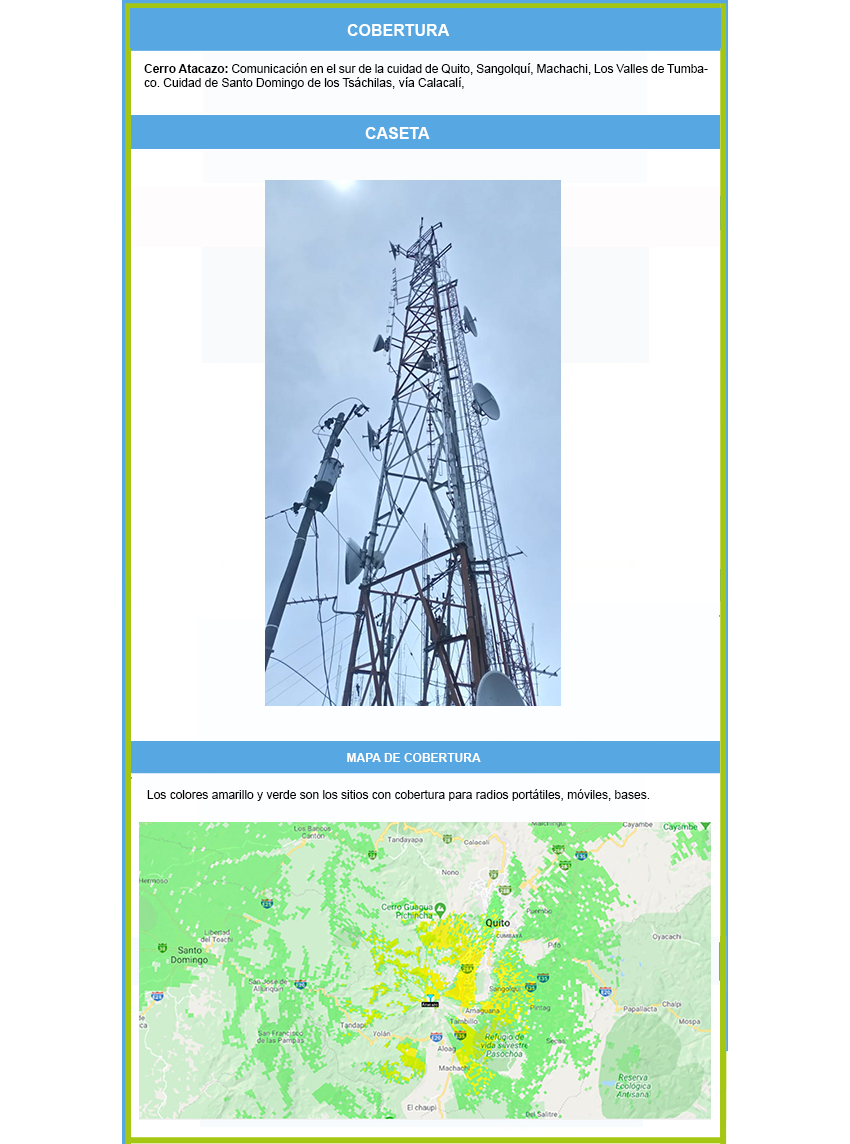 - Renta de espacio en caseta para sistemas de comunicación en los principales cerros del Ecuador: